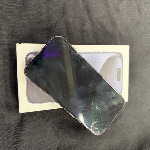 Iphone 15 pro comes with box, bill, charging cable. It has a small black dot on the screen doesnt affect the usage. Works perfectly. Super clean condition. Battery percentage 88%