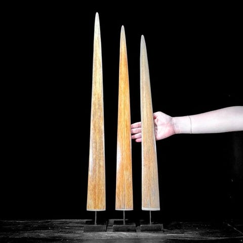 Kolmiosainen särmäkalastajan hampaat -setti, kiinnitetty räätälöityihin jalustoihin, joissa särmäkalastajan nokan halkeamat ja pohja on täytetty vaaleanbeigeellä epoksilla.Vangittu Indonesiassa. Tällaisia hampaita käytettiin aseiden valmistukseen.Todella koristeellinen esine.Noin mitat, mukaan lukien jalusta.Korkeus 1: 71 cmKorkeus 2: 70 cmKorkeus 3: 67 cmVastuuvapauslausekkeet- Koska kyseessä on luonnollinen tusk, siinä saattaa olla joitakin luonnollisia pieniä halkeamia ja uurteita. Tämä on normaalia. Katso kuvat ohjeeksi.Meidän torahampaimme puhdistetaan ammattilaisella, mutta joskus pieni värjäytymä voi silti esiintyä. Tämä on luonnollista ja normaalia, eikä siihen voi paljon vaikuttaa. Katso kuvat.Yksi tai useampi kuva esittää tyyliteltyä esinettä. Tarkat tiedot myytävästä esineestä löytyvät muista kuvista. Tyylitellyssä kuvassa olevat esineet eivät sisälly myyntiin.Paino, joka mainitaan, sisältää pakkausmateriaalin.LähetysKohde lähetetään seurantanumerolla DHL Parcelin, DPD:n tai postNlin kautta. Seuranta päivittyy Catawiki-luettelossasi, kun pakettisi on jätetty postiin.Ole hyvä ja tarkista säännöllisesti välttääksesi pakettisi palautumisen meille, jolloin ostaja vastaa toisen lähetyksen toimituskuluista.Seurantaan Espanjaan ja Portugaliin käytä tätä linkkiä ja lisää Catawiki-erästäsi saatu seurantanumero.https://clientesparcel.dhl.es/LiveTracking/HomeME EMME YHDISTÄ TOIMITUKSIA!!!Jos sinulla on kysyttävää paketistasi, ota meihin yhteyttä Catawiki-viestipalvelun kautta. Pyrimme vastaamaan kolmessa työpäivässä.