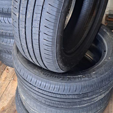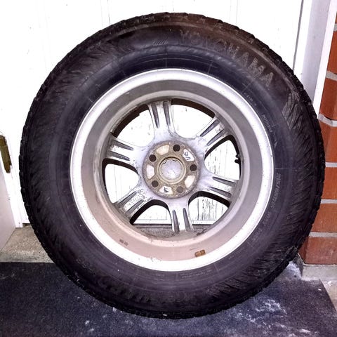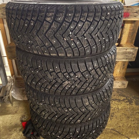 Siitä näyttävät vanteet renkaineen seuraavalle. Renkaat ollut Opel Vectra C:n alla. Jokainen vanne ehjä ja suora. Kulutuspintaa jäljellä 7mm. Yhdessä renkaassa huonommat nastat.