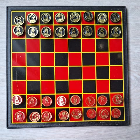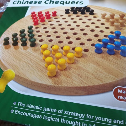 Alga kiinanshakki lautapeli. Matkaversio.Peli sisältää pelilaudan, jossa on värilliset pelimerkit. Sopii 3 pelaajalle alkaen 5 v