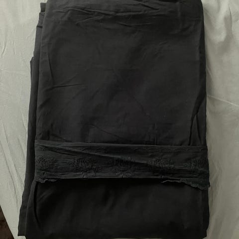 Viininpunainen silkkinen pussilakana, toinen puoli yksivärinen. Ehjä. Mitat 207x148cm eli normaali kokoinen peitto on passeli. Hinta 5€, Kuokkalanpelto/JKL