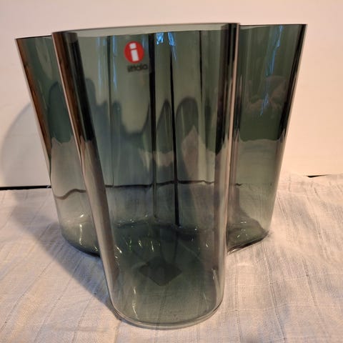 Myydään muutoin ehjä valkoinen Aalto maljakko 160, mutta kuvassa sormen vieressä pieni lohkeama, joka ei juurikaan näy ylöspäin. Vain nouto