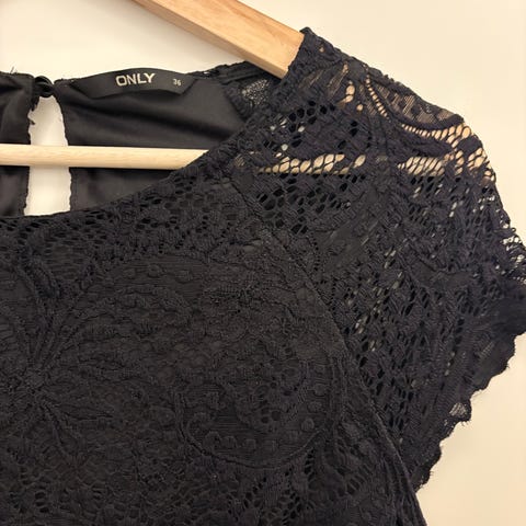 Inspire pitsimekko. Koko 36. Musta. Vuori puuvillaa. Päällinen nylonia. Niskassa vetoketju.