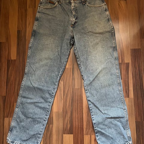 Myydään miesten vintage wrangler farkut. Koko 34/32 mutta vyötärö vastaa kyllä enemmän 31 tai 32. Pieni valkea jälki toisessa polvessa, mutta antaa vain luonnetta.