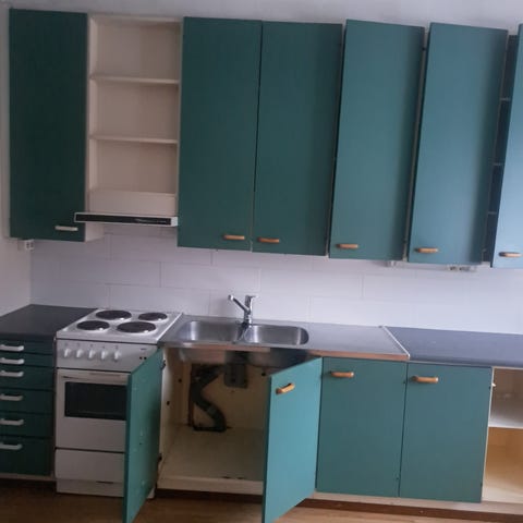 Tavaroiden takana oleva emännänkaappi