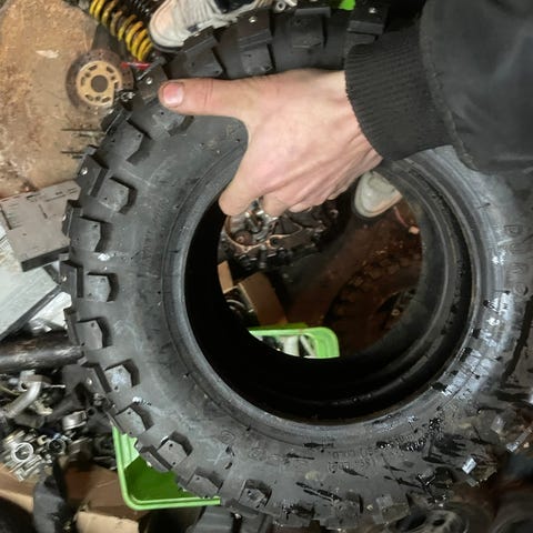 Tästä tosi vähän ajetut nastarenkaat seuraavalle, tullut vain muutama kilometri ajettua näillä. Kuvissa vähän likaset kun viimeksi ajettiin keväällä. Ostin wandalta 100€ uutena ja yhden talven oli mopossa kiinni. Ei kuitenkaan tullut talvella ajettua juuri ollenkaan joten ajattelin etten tarvitse. Pinta ei ole juuri ollenkaan kulunut. Sopii mankiin ja pv mopoon