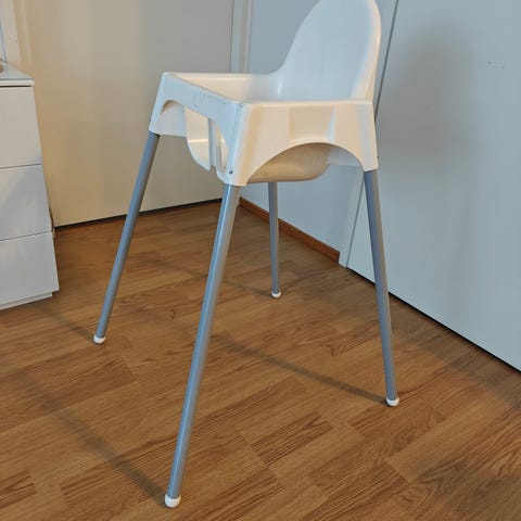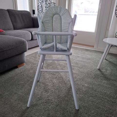 Hyväkuntoinen syöttötuoli pehmusteella ja böillä