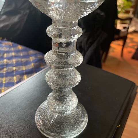 Iittala Festivo kynttilänjalka 4 solmua, koriste-esineeksi tai käyttöön, kirkas lasi. Esine on valmistettu kirkkaasta lasista ja siinä on koristeellinen pinta.