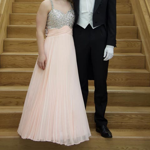 Vanhojen tanssimekko, vannehame, vaatelaukku | Prom gown, petticoat, garment bag