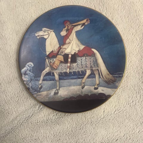 Akseli Gallen-Kallela, Kalevala 1, Kullervon sotaanlähtö. Arabia. Halkaisija 22,5 cm.