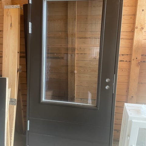 Hyväkuntoinen ovi turvalasilla ja lukkorungot mukaan, toinen turvalukolle. Sopii 1x2m. aukkoon, oven ulkomitat 970x2090