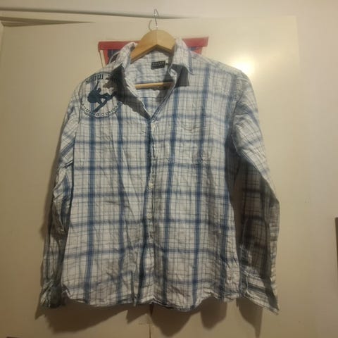 L.O.G.G. sininen lasten kauluspaita, koko 152 cm. Valmistettu puuvillasta ja suunniteltu pojille. Paita sisältää pieniä kuvioita ja napit edessä.