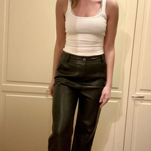 Tekonahkahousut. Kunto hyvä. Kokolappu sanoo onesize, mutta itse arvioisin kooksi S.