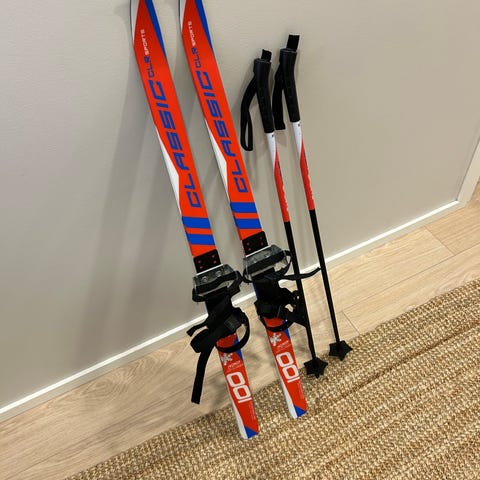 Voiteluvapaalla pitopohjalla olevat 100 cm ensisukset ja sauvat. Sukset kiinnitetään kenkiin. Nouto tai lähetys 19,90 e.