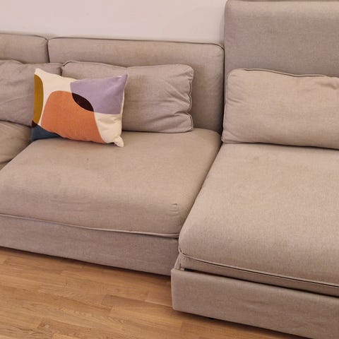 Vallentuna vuoderahi. Päälliset ostettu erikseen, venyvää materiaalia ja helppo ottaa pesuun. Alkuperäiset päälliset saa mukaan, mutta ne on tosi kuluneet.