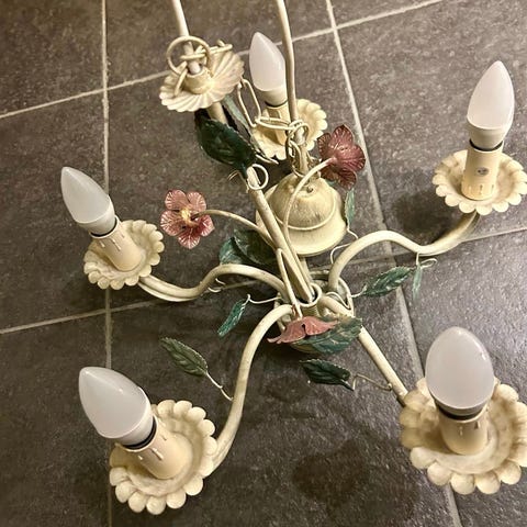 Vankka ja painava (5 kg) kattovalaisin rautaa ja paksua opaalilasia. Halkaisija 40 cm ja suurin korkeus n 70 cm. Kolme lamppua max. 40 W kukin, E 27 kannalla. Pistokeliitäntä. Ehjä ja toiminta testattu. Nouto Porvoo, voit myös kysyä kuljetuksesta jos vaikka sattuisi ajoreittiemme varteen.