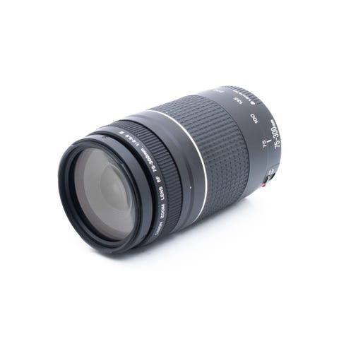 Canon 75-300mm teleobjektiivi, polttoväli 75-300 mm. Objektiivi soveltuu pitkän matkan valokuvaukseen ja sisältää säädettävän zoom-toiminnon. Linssisuojat mukana, täysin virheetön, uutta vastaava.