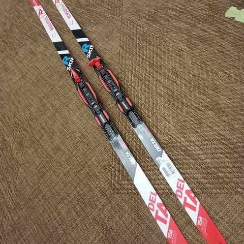 Rossignol maastohiihtosukset, pituus 117 cm. Halutessa mukaan 115 cm pitkät sauvat.