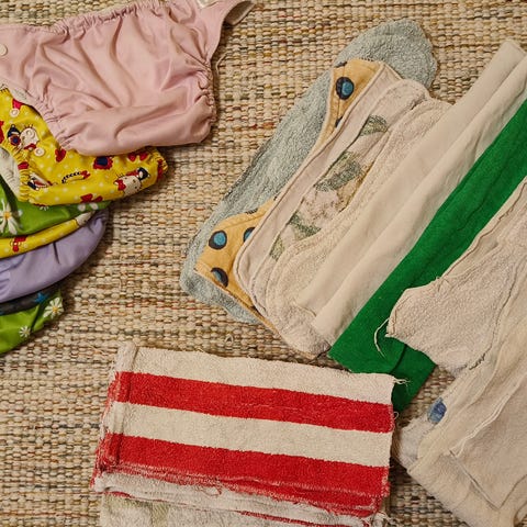 Iso läjä kestovaippoja ja imuja