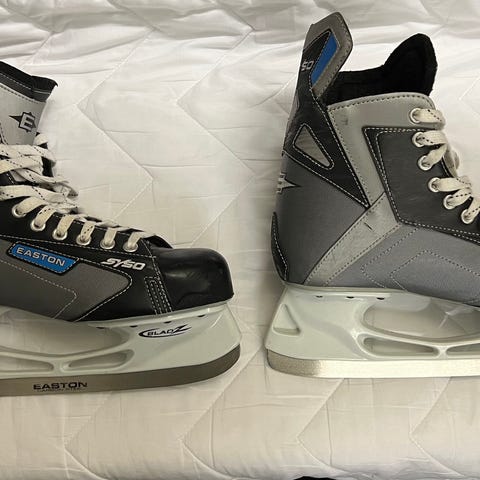 Easton luistimet kokoa 5 eli noin 38. Sisäpohjan mitta 24,5 cm. Luistimet ovat musta-harmaan ja lähes käyttämättömät. Eläintalous.