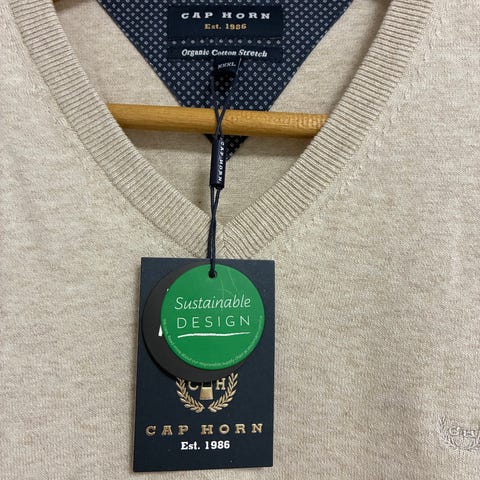 Myydään uusi miesten Cap Horn -merkkinen neule. Väri beige ja materiaali 100% villa-merino.
