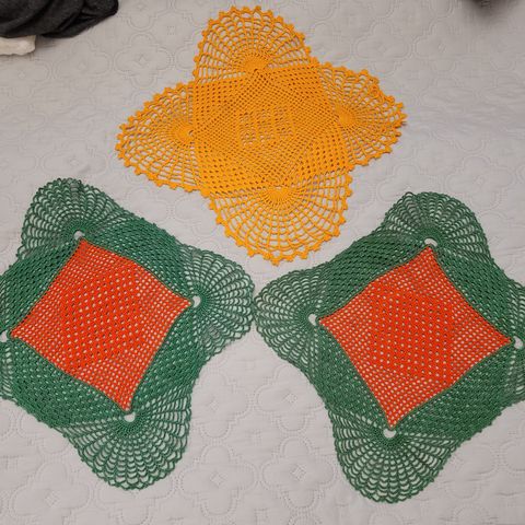 Kalastajalangasta uusia 24 kpl virkattuja paloja. Koko 15 x 15 cm. Savuton, eläimetön ja homeeton talous. yhteinen hinta 10 e + pk MH kautta.