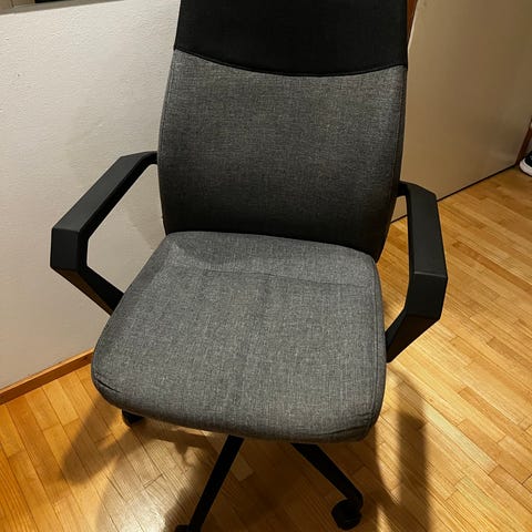 Myyntiin suoraan käytöstä Ikean musta työtuoli, ollut pari vuotta käytössä. Tuolissa käsinojissa käytönjälkeä, ks kuva. Liikutellessa istuinosa narisee hieman, saa varmaan kiristämällä/rasvaamalla tämän vian fiksattua. ☺️