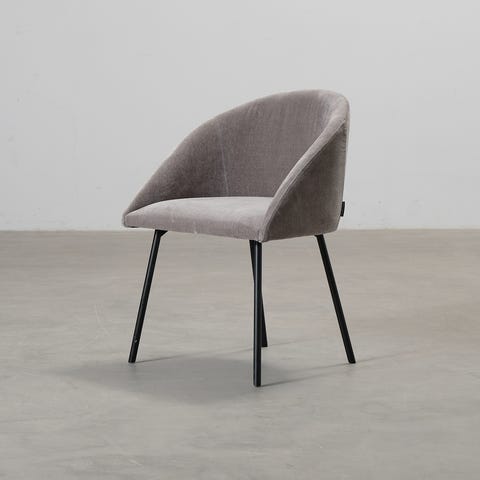 Felipe-tuoli on kaunis ruokapöydän tuoli harmaalla samettiverhoilulla. Mustat metallijalat.