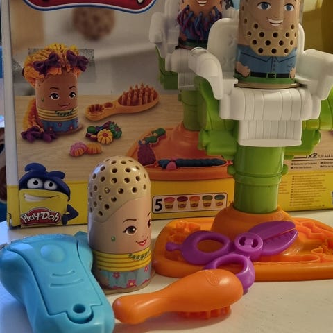 Play-Doh ja Hasbro dentist -muovailuvatarvikkeita.