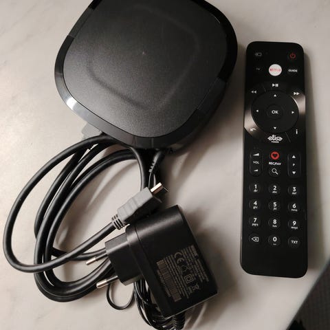 Kaukosäädin ja 12V/1.5A virtalähde mukana.