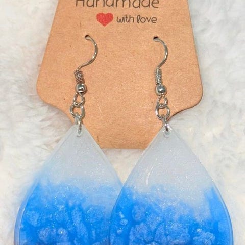 Handmade Epoxy Earrings - Frosted Leaf Whispers