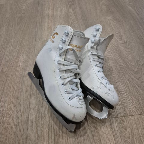 Siistikuntoiset Graf luistimet, koko säädettävissä 27-30. Myös terät siistissä kunnossa. Nouto Renkomäestä. 10e.