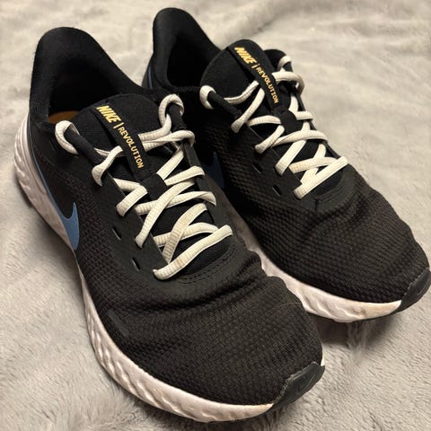 Juoksukengät, kunto käytetty, mutta menevät vielä seuraavalle juoksijalle. Pohjat ehjät, kankaan väri likaantunut.