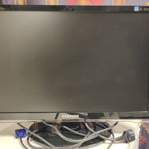 Siinä ihan laadukas Lenovon näyttö mukaan. Mitään ongelmia ei ole ollut käytössä. Virtajohto kuuluu pakkaukseen.