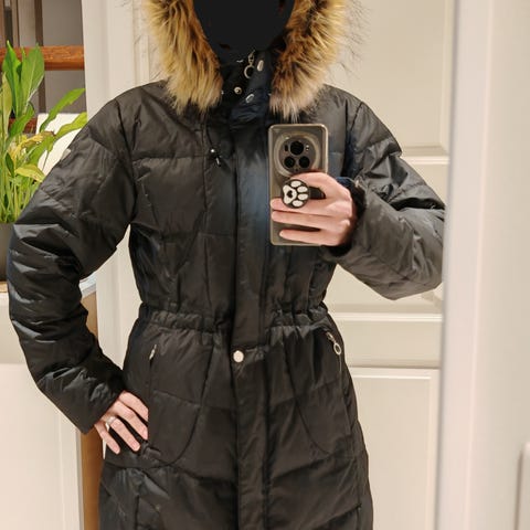 Vähän käytetty naisten talvitakki. Hupussa irroitettava karvareunus.