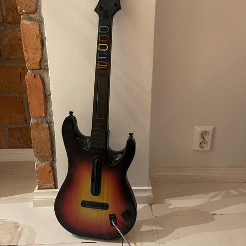 Kuvan mukainen ps2 kitara. Vastaanotin ei ole mukana joten toiminnasta ei tietoa. Tarjoa. Postitus onnistuu tarvittaessa.