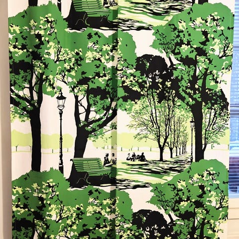 Oliivin vihreitä Vallilan kukkatarha verhoja 2 kappaletta. Haku Pyynikiltä.