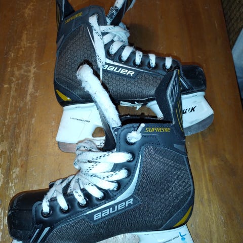 Kaksi talvea käytössä olleet luistimet. Tullut meille uutena eli vain yhdellä lapsella olleet käytössä. Erittäin tukevat vielä ja terää paljon jäljellä. Kiekkoilusta tullutta jälkeä tottakai näkyvissä teräosan muovissa, mutta muuten oikein ehjät ja siistit.