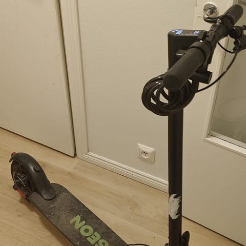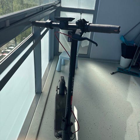 NAVEE Electric Scooter on sähköpotkulauta, jossa on musta runko. Se soveltuu henkilökohtaiseen liikkumiseen kaupunkialueilla. Potkulaudassa on digitaalinen näyttö, joka näyttää nopeuden ja akun tilan.