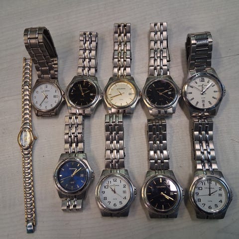 Käytössä olleita kaikki muut paitsi oikealla reunalla valkoinen kello.