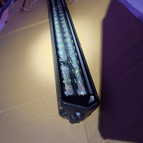 Hyväkuntoinen lisävalo 13kk käytössä mutta linssissä ei jälkiä havaittavissa.Valo ollut päällä noin 5 tuntia. Päätykiinnikkeet ja kuvan kilpiteline mukaan. Tehotila napilla valon päädystä,oranssi tai valkoinen parkki.