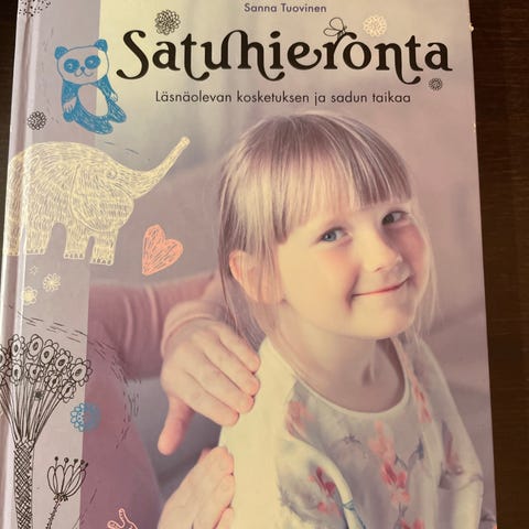 Satumetsässä on mahdollista nähdä asioita, joita vain harva pääsee näkemään, kokea ennen kokematonta, sekä pysähtyä huomaamaan elämään sisältyvä sadunhohtoisuus. Tämä valloittava satuhieronta-tuotekokonaisuus pitää sisällään lapsenomaista ihmettelyä ja iloa, sekä myös aikuista koskettavaa syvällisyyttä ja herkkyyttä. Opasvihko avaa kahdeksan satuhieorntakortin voimaannuttavia viestejä, sekä korttien käyttömahdollisuuksia.