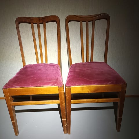 Käsin tehdyt vanhat puiset tuolit 2kpl myytävänä. Rungot molemmissa tukevia. Toinen aikanaan lakattua, toinen ei. Istuinkorkeus ei ole sama, 40,5/43 cm. Myydään parina.
