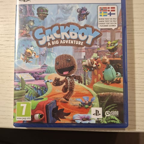 Sony Sackboy: A Big Adventure on Playstation 5 -pelilevy. Peli on fyysisessä muodossa ja sisältää pelilevyn sekä käyttöohjeet. Ikäsuositus 7 vuotta ja yli.