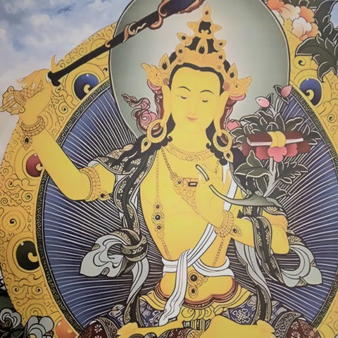 Uusi Tara (buddhalaisuus) thangkamaalauksen reproduktio, koossa 50x70cm. Pingotettu puiseen pinkopohjaan. Nyt edullisesti eteenpäin tarpeettomana.