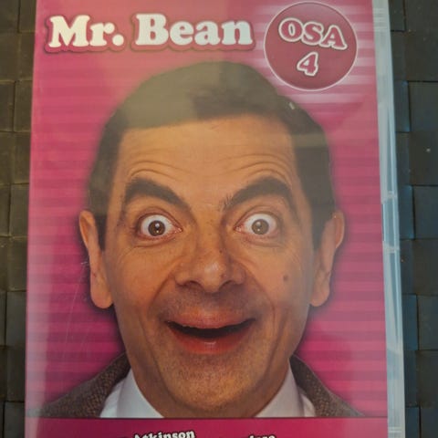 Mr Bean Merry Christmas-DVD, vieläkin muoveissa, odotellut laatikossa hetken että joku katsoisi.