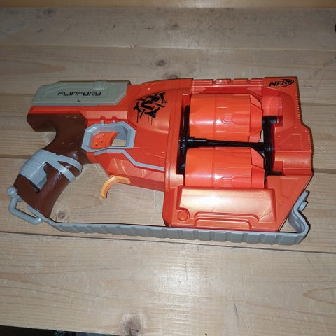 Nerf naulapyssy, joka ampuu nerf vaahtoammuksia. Toimii. Mukana kuvassa näkyvät lisäosat. Katso myös toiset ilmoitukset. Nouto tai posti.