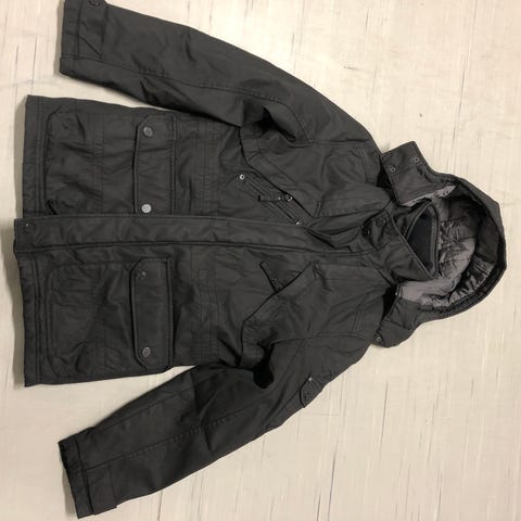 Miesten Esprit talvitakki, lyhyt puseromalli. M koko, väri murrettu ruskea. Sisällä povitasku, edessä napilliset taskut ja käsitaskut. Pari kertaa pidetty, on liian pieni. Lämmin pusero tyyppinen takki, karvakaulus irrotettava. Lähes uuden veroinen takki.