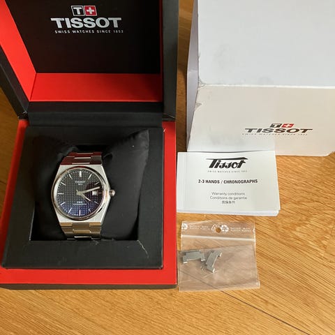 Myydään Tissot PRX Powermatic 80 -automaattikello, mallinumero T137.407.33.021.00. Kyseessä on sveitsiläinen rannekello, joka perustuu Tissotin 1970-luvun PRX-malliin.