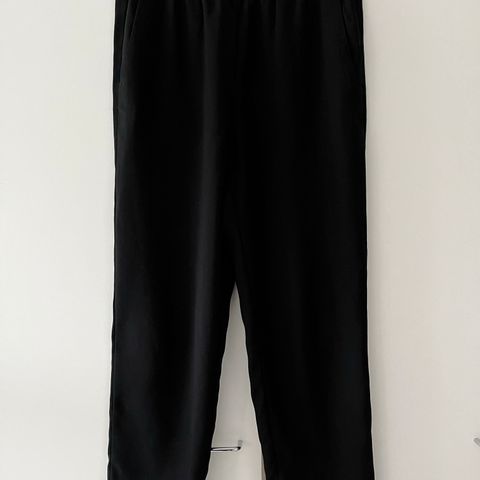 Itselleni pienet mustat suorat housut koossa 38. Minulla jäänyt käyttämättä. Stockmann Global essentials merkkiset. Materiaali polyesteriä. Liukasta kangasta. Edessä pienet taskut. Vetoketju ja hakaset. Koiratalous.